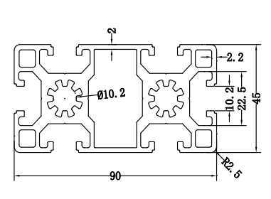 45*90 কাস্টম মেটাল শেয়ার্ড ইন্ডাস্ট্রিয়াল অ্যালুমিনিয়াম অ্যালোয় অ্যালুমিনিয়াম এক্সট্রুশন প্রোফাইল